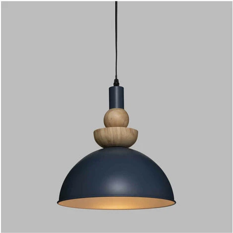 Atmosphera – Luminaire Suspension en Métal Bleu et Bois D 31 cm (-)