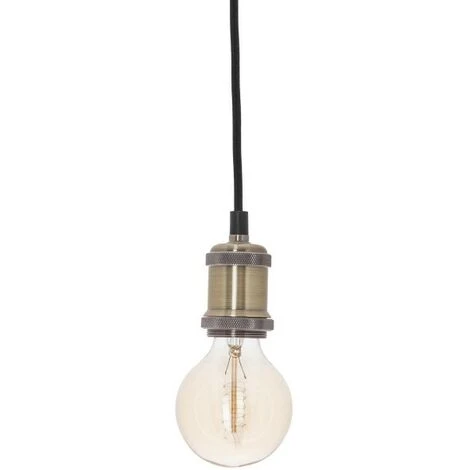 Couleur : or et fil gris et noir. Dimensions : diamètre 5 x hauteur 8,5 cm. Longueur fil : 120 cm. Base : diamètre 10 x hauteur 2 cm. Matière : métal (fer) et aluminium. Alimentation : secteur, puissance max 60W. Douille : E27. Poids : 300g. Ampoule non-incluse. Marque Atmosphera