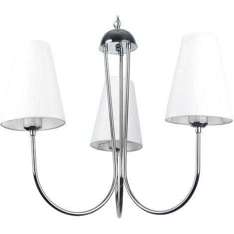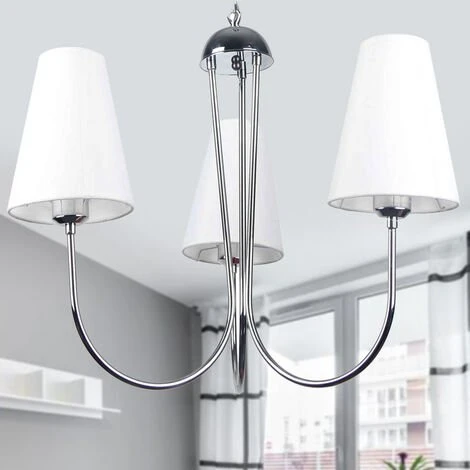 Suspension lustre chandelier blanc 3 lampes en métal et tissu