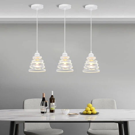 - Matériau métallique de haute qualité, peinture de cuisson à haute température, pas de rouille, solide et durable, longue durée de vie. La forme de la cage est très similaire à un ressort et le lustre Blanc en métal est très unique.