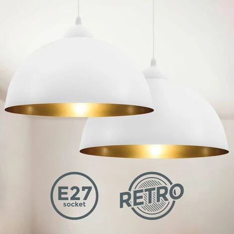 B.K.Licht suspension design/ luminaire plafond • lot de 2 • culot E27 – ampoule non fournie • halogène / LED 60 Watt max • 230V • indice de protection IP20 • matériel: métal • couleur blanche / dorée • diamètre: 300 mm | hauteur max.: 1.600 mm