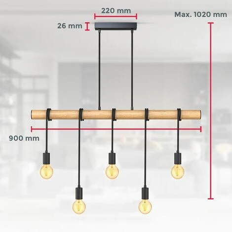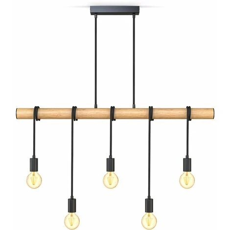 B.K.Licht 5 lampe à suspension à flamme I métal et bois I E27 I noir mat I lampe à suspension vintage I lampe à suspension rétro I sans ampoule
