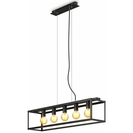 B.K.Licht – Lustre rétro – Métal – Noir mat – 5 douilles E27 – réglable en hauteur – Classe de protection IP20 – 920x200x1200mm (Lxlxh) – Ampoules non incluses – max. 60W par ampoule
