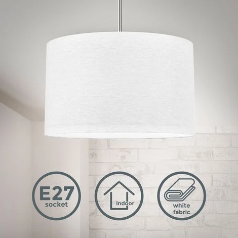 - ECLAIRAGE – cette suspension avec son abat-jour en textile blanc est équipée d’une douille E27 pour ampoule LED ou halogène de max. 40 Watt. Nous recommandons des ampoules LED beaucoup plus économiques.