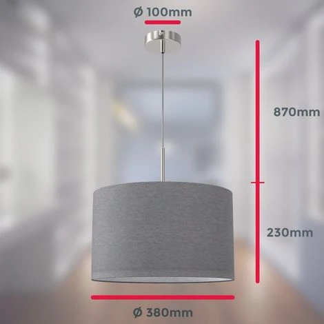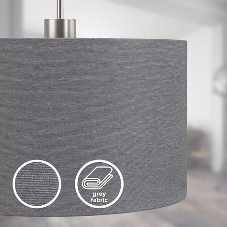 B.K.Licht plafonnier LED design textile • 1 douille E27 • livré sans ampoule • pour ampoule LED ou halogène de max 40 Watt • 230V • indice de protection IP20 • matériel: métal / tissu • couleur grise • diamètre 380 mm, hauteur totale 1100 mm