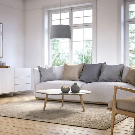 - ECLAIRAGE – cette suspension avec son abat-jour en textile gris est équipée d’une douille E27 pour ampoule LED ou halogène de max. 40 Watt. Nous recommandons des ampoules LED beaucoup plus économiques.