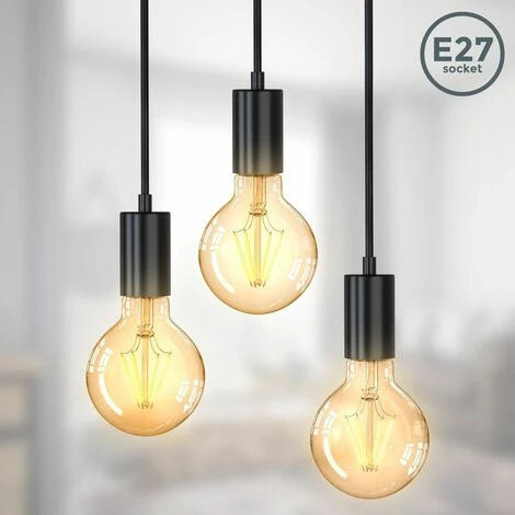 Résumé pour vous: suspension rétro 3 douilles E27 pour ampoules de max. 10 Watt Ø210x1200mm Noir mat ampoules non fournies pas réglable en hauteur Inclus dans la livraison: 2 vis 2 chevilles 1 support de montage 1 instruction de montage