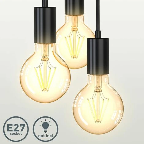 B.K.Licht suspension rétro – 3 douilles E27 – pour ampoules de 10W max. – livrée sans ampoules – couleur: noire matte – matériel: métal – diamètre: 210mm – hauteur: 1200mm – hauteur pas réglable -indice de protection IP20