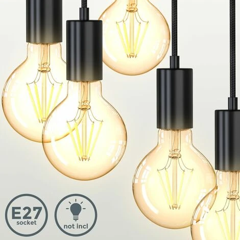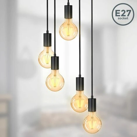 SUSPENSION : ce lustre de design rĂ©tro est Ă©quipĂ© de cinq douilles E27 de diffĂ©rentes hauteurs. Nous recommandons des ampoules Edison ou Ă filaments dâune puissance maximale de 10 Watt par ampoule afin de souligner lâaspect vintage. Veuillez noter, les ampoules ne sont pas fournies.Â