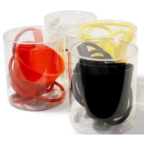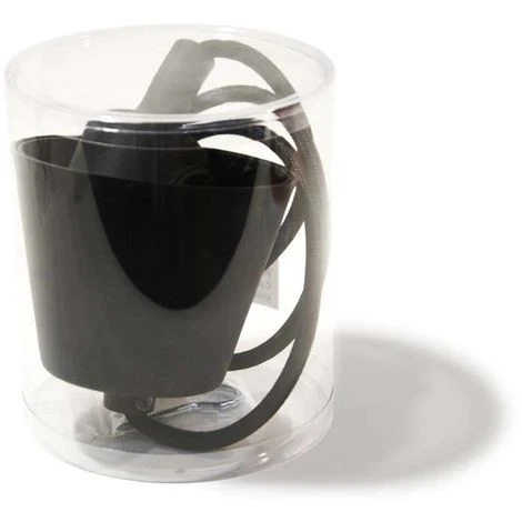 Douille en silicone E27, et suspension par cordon en tissu de couleur. Disponible en Noir, Blanc, Jaune et Rouge.