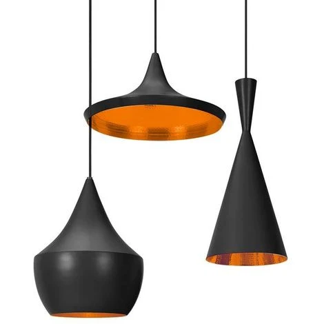 Triple suspension réplique tom dixon à l’élégant design scandinave, originale avec ses trois superbes abat-jour dépareillés en aluminium noir (douille E27). Ampoules non incluses.
