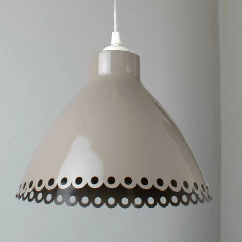 Très bel abat-jour en métal dentelé vers le bas et de couleur Taupe.