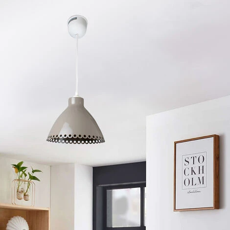Cette suspension en métal taupe est très moderne mais peut se combiner avec la majorité des intérieurs.