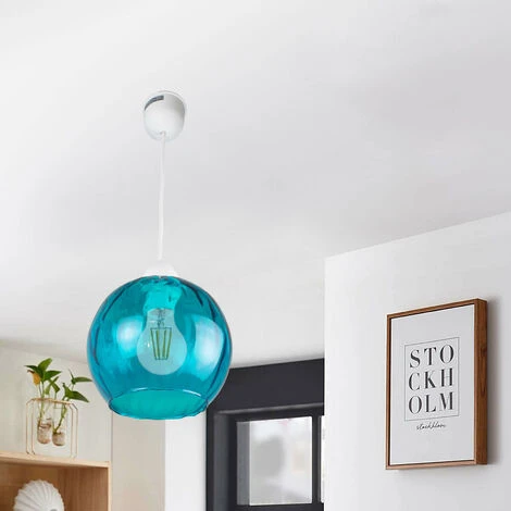 Adoptez cette suspension lumineuse en verre bleu turquoise pour éclairer votre chambre ou pièce à vivre.