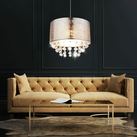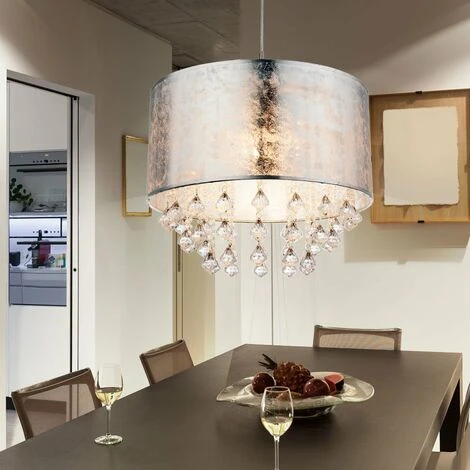 Illuminez votre espace de vie avec cette magnifique lampe suspendue . L’abat-jour en tissu et acrylique, qui apparaît dans un argent brillant, met des accents élégants et montre bon goût. Profitez d’un agréable jeu de lumière dans votre salon. Une lampe avec une douille E27 et une puissance maximale de 60 watts peut être utilisé dans la lampe