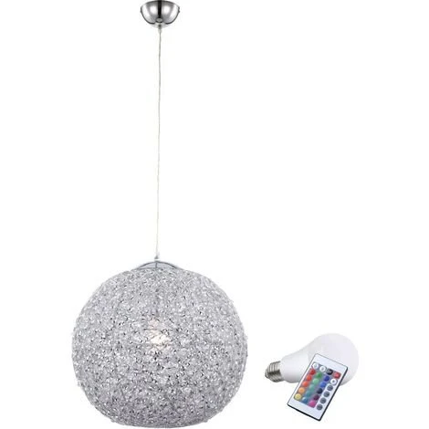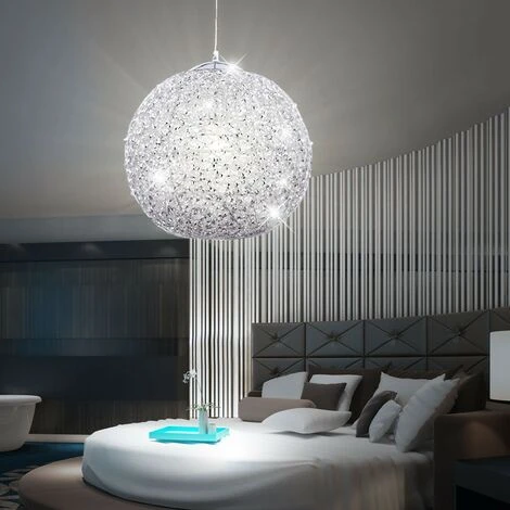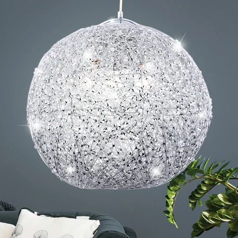 Description Suspension glamour pour un éclairage intérieur élégant. En plus de la suspension en Chrome brillant, cette suspension glamour propose également un abat-jour en maille d’aluminium chromé. Avec l’aide de la source lumineuse appropriée, votre espace de vie choisi sera bien éclairé.