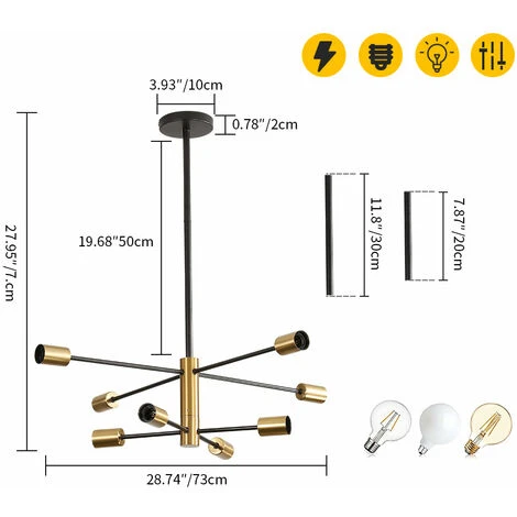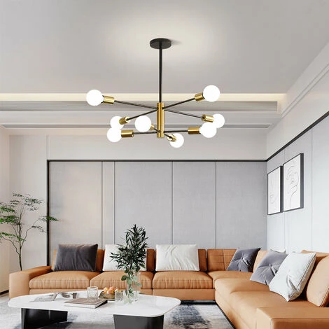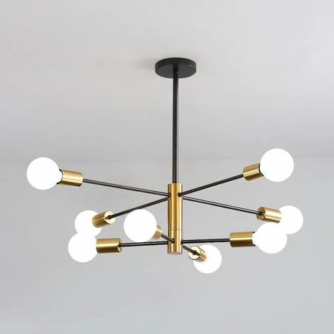 Lustre Salon Moderne, Suspension Luminaire Industrielle, Noir-doré 8 Lumières E27 Base, Réglage de rotation 360° Lustre Plafonnier en Métal pour Salon Chambre Salle à Manger, (Sans ampoules)