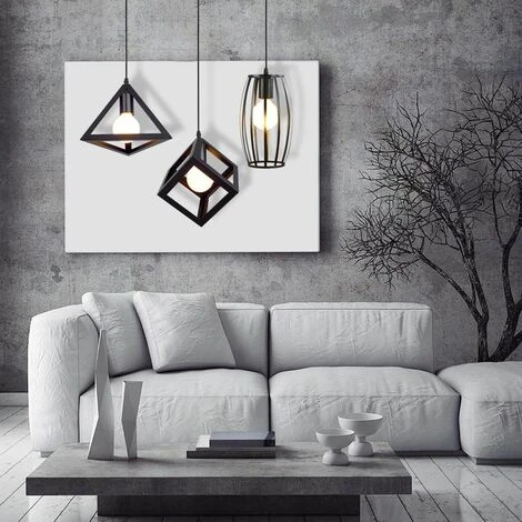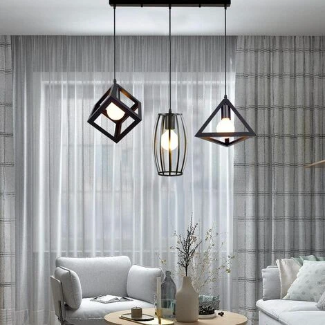 Suspension 3 en 1: la suspensions luminaire se combine avec 3 types d’abat-jour géométriques: la forme de cube, la forme de triangle et la forme de cage. Le design élégant et moderne apporte une note particulière pour la décoration intérieure.