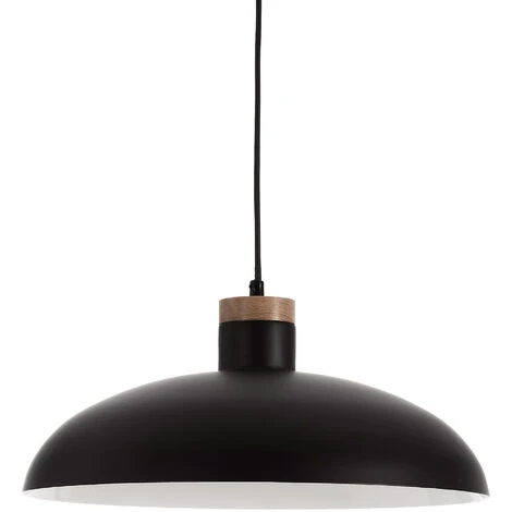 Lampe suspension avec abat-jour en métal et bois. Pour ampoule E27 non comprise.