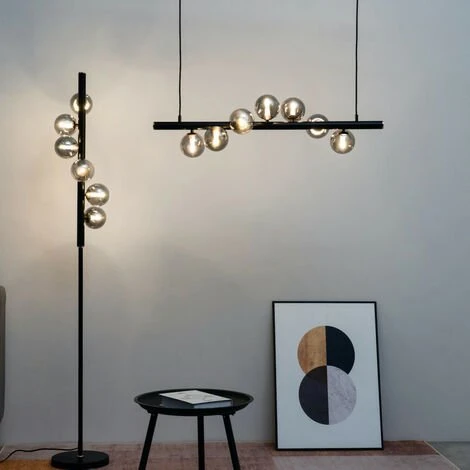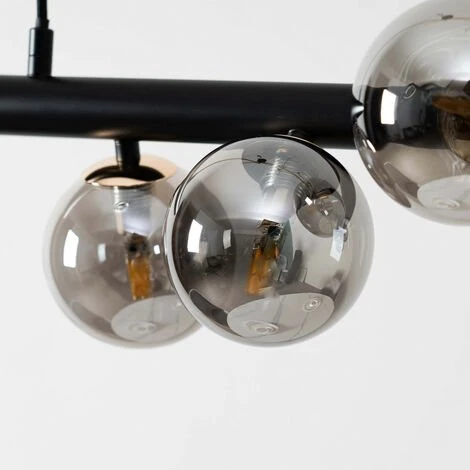 Nizzalo est une majestueuse suspension verticale très design avec 7 boules en verre fumé. Les boules sont accrochées harmonieusement et forment une vague tout autour de la barre centrale. Chacune d’elle loge une ampoule de culot G9. Très moderne et élégante, cette suspension, dont il est possible de régler la hauteur, apportera une touche unique à votre pièce et tapera tout de suite dans l’œil de vos convives ! Descriptif technique du luminaire : Culot de l’ampoule : G9 | Ampoule : 7 x max 28W | Indice de protection : IP20 | Tension : 220-224VAC 50/60Hz | Poids du luminaire : 2,1kg | Poids du colis : 3,1 kg | Couleur du produit : Argenté / Chromé | Matière : Verre et acier | Longueur : 90 cm | Largeur : 27 cm | Hauteur : 27 cm | Diamètre : | Profondeur :