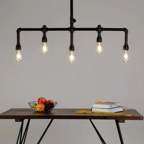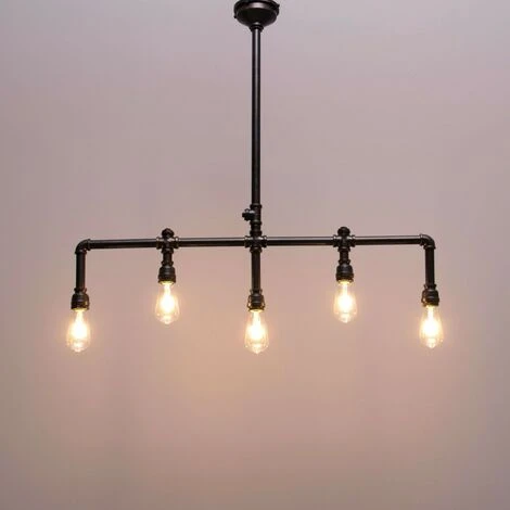 Suspension industrielle multiple Luigi en métal composée de 5 lumières. De couleur cuivre, cette jolie suspension design très originale sera parfaite au-dessus d’une table. Grâce à 5 ampoules E27, ce luminaire d’une longueur de 98 cm offrira un éclairage homogène et chaleureux à votre pièce. Son design agrémentera la décoration de votre intérieur par une touche d’un style rétro et vintage. Descriptif technique du luminaire : Culot de l’ampoule : E27 | Ampoule : 5 x Max 40W | Indice de protection : IP20 | Tension : 220/230V 50/60Hz | Poids du luminaire : 4,2 kg | Poids du colis : 4,9 kg | Couleur du produit : Cuivre | Matière : Métal | Longueur : 98 cm | Largeur : | Hauteur : 90 cm | Diamètre : | Profondeur :