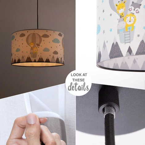 dĂ©collage immĂ©diat dans la chambre des enfants ! Dâadorables petits animaux invitent vos bambins Ă une aventure en montgolfiĂšre tout en crĂ©ant une ambiance trĂšs agrĂ©able. Ce luminaire de forme sobre sĂ©duit particuliĂšrement par son abat-jour en tissu dotĂ© dâun motif gai et adaptĂ© aux enfants dans des teintes pastel. Pour un montage facile et un remplacement aisĂ©, les abat-jours sont Ă©quipĂ©s dâune bande velcro pratique. En fonction de la source choisie, ils dispenseront une lumiĂšre dâambiance claire et douce.