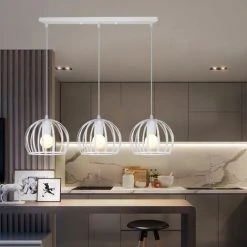 De gros ❤️ AXHUP Suspension Luminaire Industrielle 3 Tête Retro Lustre Cage Luminaire Blanc ✔️