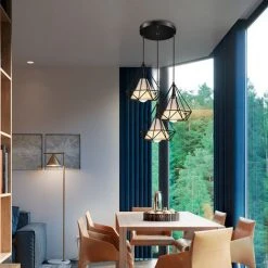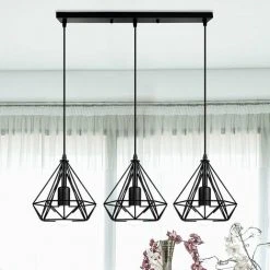 Nouveau ⌛ AXHUP Lustre Suspension Cage Forme Diamant Contemporain Plafonnier Lampe Noir 🧨
