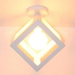 Offres 😉 AXHUP Moderne Plafonnier Industriel Cage Cube Métal Fer Lustre Suspension E27 40W Blanc ❤️