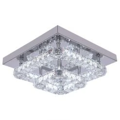 Remise â GREELUSTR 2 Plafonnier En Cristal Carré Luminaire Moderne Semi-encastré Lustre Plafonnier Pour Couloir D’entrée, Deux Couleurs Claires â