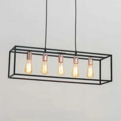 Budget ⭐ KOSILUM Grande Suspension Vintage En Forme Rectangulaire – Arezzo – Noir Et Cuivre ✔️