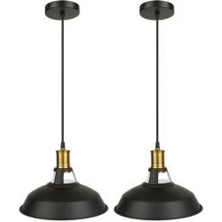 Offres 🎉 OOBEST 2PCS Lustre Suspension Industrielle Vintage E27 Lampe Plafonniers Retro Abat-jour Pour Cuisine Salle à Manger Salon Chambre Restaurant Noir ✨