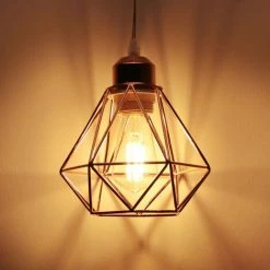 Sortie 🌟 STOEX Lustre Suspension Industrielle 25cm En Forme Diamant Corde De Chanvre Noir 🔥
