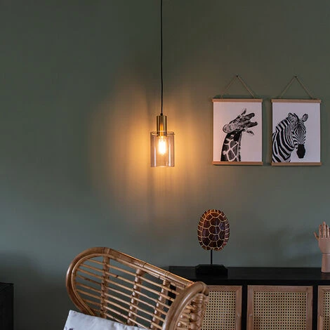 QAZQA Suspension vintage en laiton avec verre fumé – Vidra