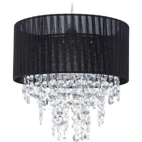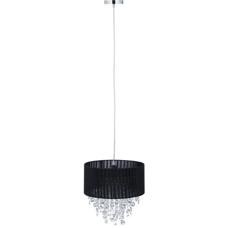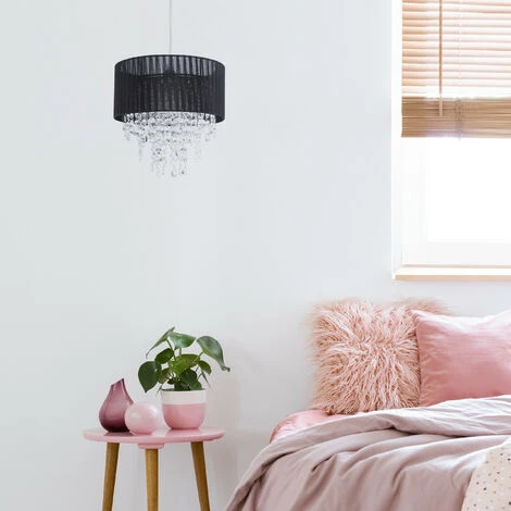 Cette lampe suspendue avec abat-jour est idéale pour plonger votre salon dans une ambiance cosy ou diffuser une lumière agréable dans la chambre à coucher. L’abat-jour en organza noir tamise légèrement la lumière pour plus de confort et les cordelettes de cristaux suspendues à l’intérieur en font un objet décoratif incontournable. Lorsque la lampe est allumée, ces cristaux produisent un jeu de lumière fascinant mais la lampe, par son allure, reste esthétique même éteinte.