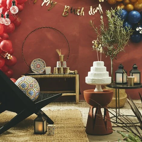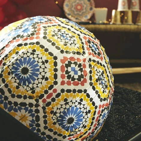 Découvrez la collection Marrakech grâce à notre boule papier de 30cm ! Compléter votre décoration de table avec les assiettes et gobelets de la même collection ! La Collection Marrakech est une collection colorée aux motifs orientaux qui donne le ton à une décoration pour vos différentes festivités, qu’il s’agisse d’une fête tradionnelle ou d’une garden-party !