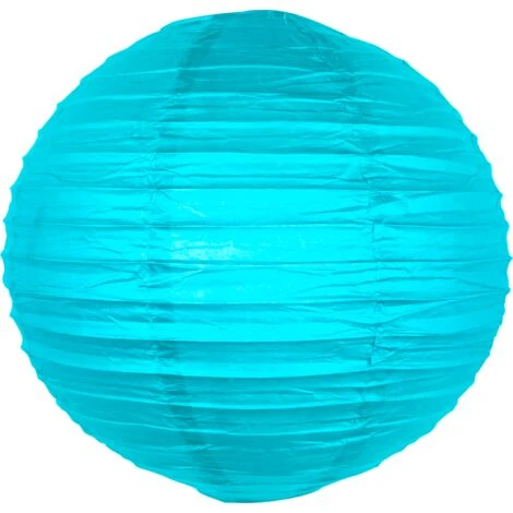 Ce type de lanterne pourra être utilisé pour un mariage, une Bar Mitzvah, ou un repas de famille. Nos boules papier sont faciles à déplier, en quelques secondes vous pourrez enrichir la pièce de couleur turquoise. Le montage n’exige pas de matériel spécifique. Pour un meilleur rendu, vous pourriez pendre votre lanterne avec du fil de fer ou de la cordelette. Petite astuce: étendre un cordon entre les voûtes afin d’offrir une place de choix à votre déco. Ces lanternes se marient complètement avec les autres gammes SkyLantern.fr, les boules lumineuses, les fanions, ou encore les rosaces. Pour les cas où le turquoise n’est pas exclusif dans vos arrangements, vous allez pouvoir rajouter différentes nuances disponibles sur SkyLantern.fr. Complétez avec plusieurs dimensions en plus du volume 30 cm, modèles proposés: de 10 à 50 centimètres.