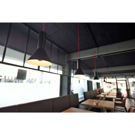 La gamme de suspensions 230V coniques PHELIA offre de multiples variations. De couleur noire, ce luminaire est doté d’une patère ronde. La douille E27 intégrée au luminaire permet de l’utiliser avec des sources LED et à économie d’énergie. Longueur de suspension du luminaire : 200 cm.