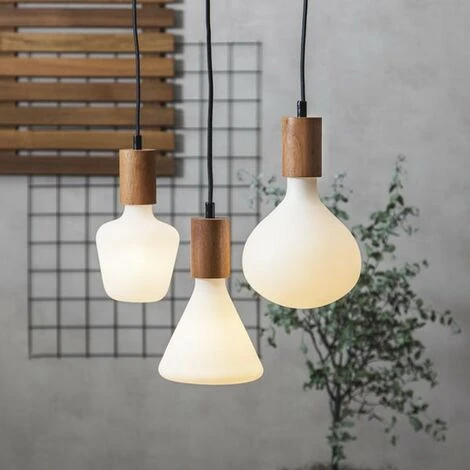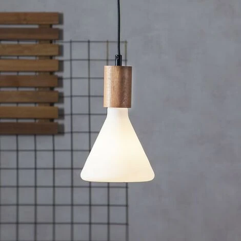 Suspension très tendance avec culot E27 (ampoule non fournie). Cette suspension avec finition bois