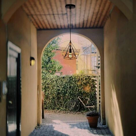 Lampe pendante industrielle de style rétro, conception innovante et forme diamant font la faveur rustique, confortable et chic à votre maison.