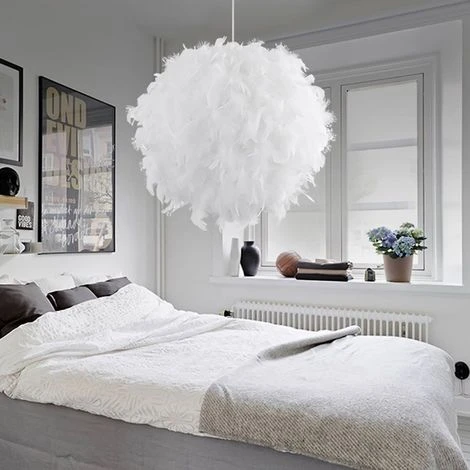L’effet est superbe,l’écran de la lampe en plume Une lumière douce et amère dans l’obscurité.