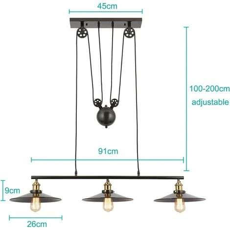 La suspension au design élégant et rétro dotée d’un système pully et de 3 abat-jours génère un style unique pour votre maison, idéale pour la décoration de style moderne et vinatge.
