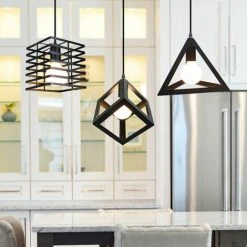 Remise 🎁 WOTTES Lustre Suspension Abat-jour En Métal Ajustable E27 Pour Chambre Bar Noir – Noir ❤️