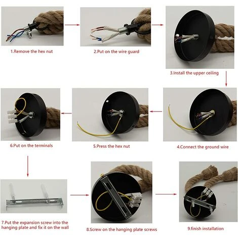 2.Tension: 220-240V | Puissance: max 60W | Matriel: mtal, corde de chanvre | (ampoule non incluse)| 1 x adaptateur de ttes E27.