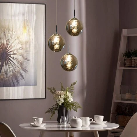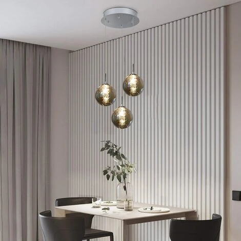 Nouveau 🤩 ZMH Lampe à Suspension Table à Manger Lampe à Suspension Lampe à Suspension Réglable En Couleur Gris Verre à 3 Flammes Cuisine Lampe De Salon Lampe De Chambre Lampe De Salle [Classe énergétique E]-gris Fumé ✔️