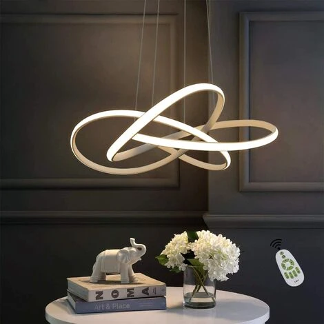 Grosses soldes 🔥 ZMH LED Lampe Suspension Plafonnier LED Pour Salle à Manger Blanc 62 Cm Anneaux Lustre Salon 68 W Intensité Variable Avec Télécommande Hauteur Réglable Éclairage Intérieur Plafonnier-Blanc ✨