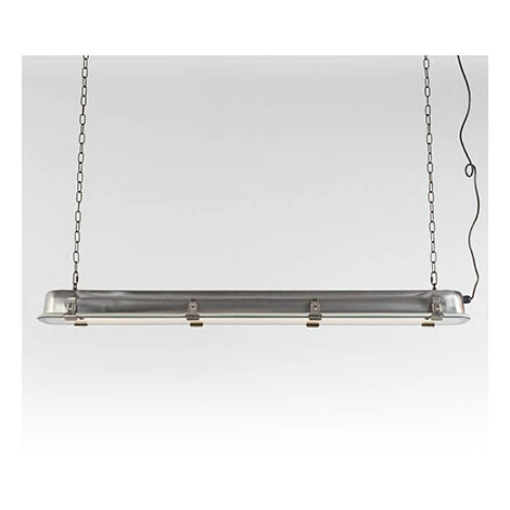 Matière : abat-jour avec visière en verre trempée et grille métallique, auvent et chaînes en métal